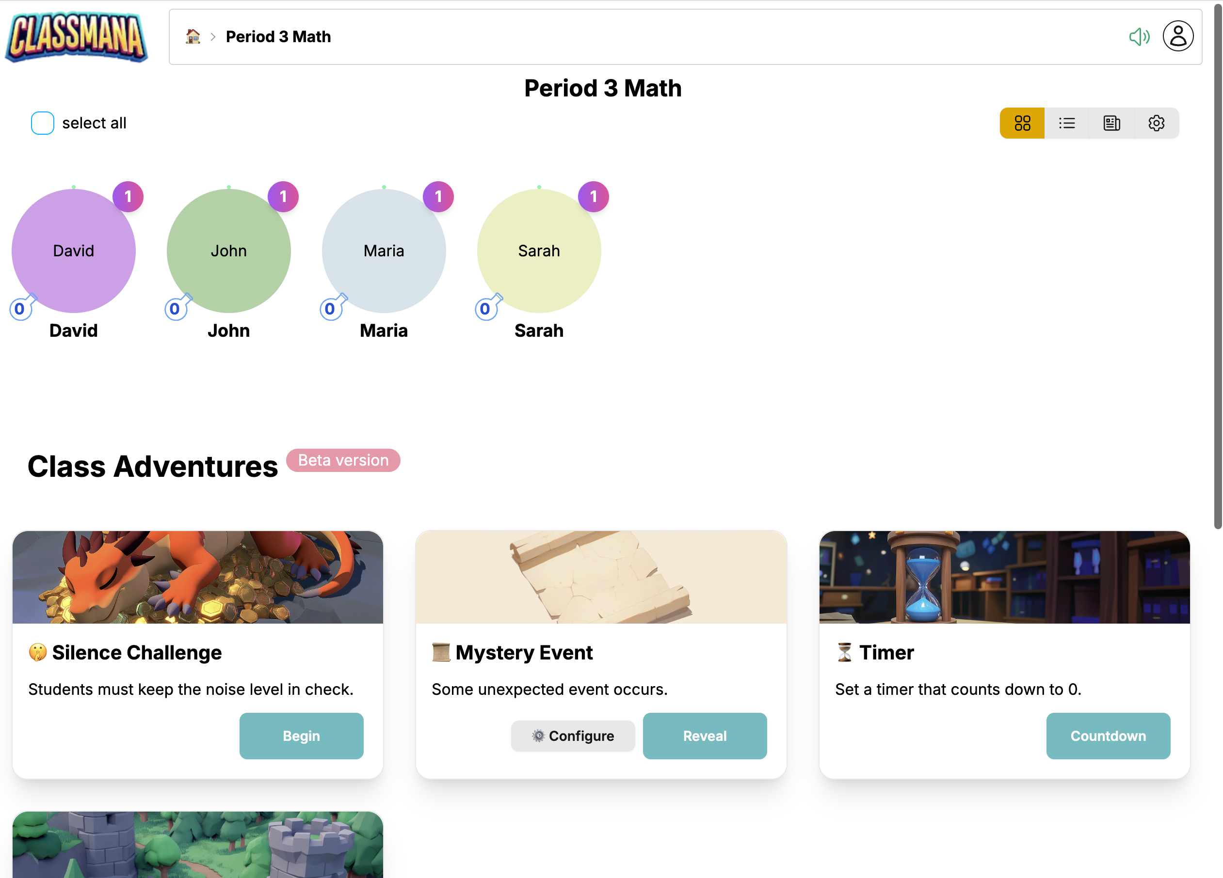 Таблото на вашия клас сега ще показва вашите ученици (ако сте добавили някакви) и сте готови да започнете да давате награди.