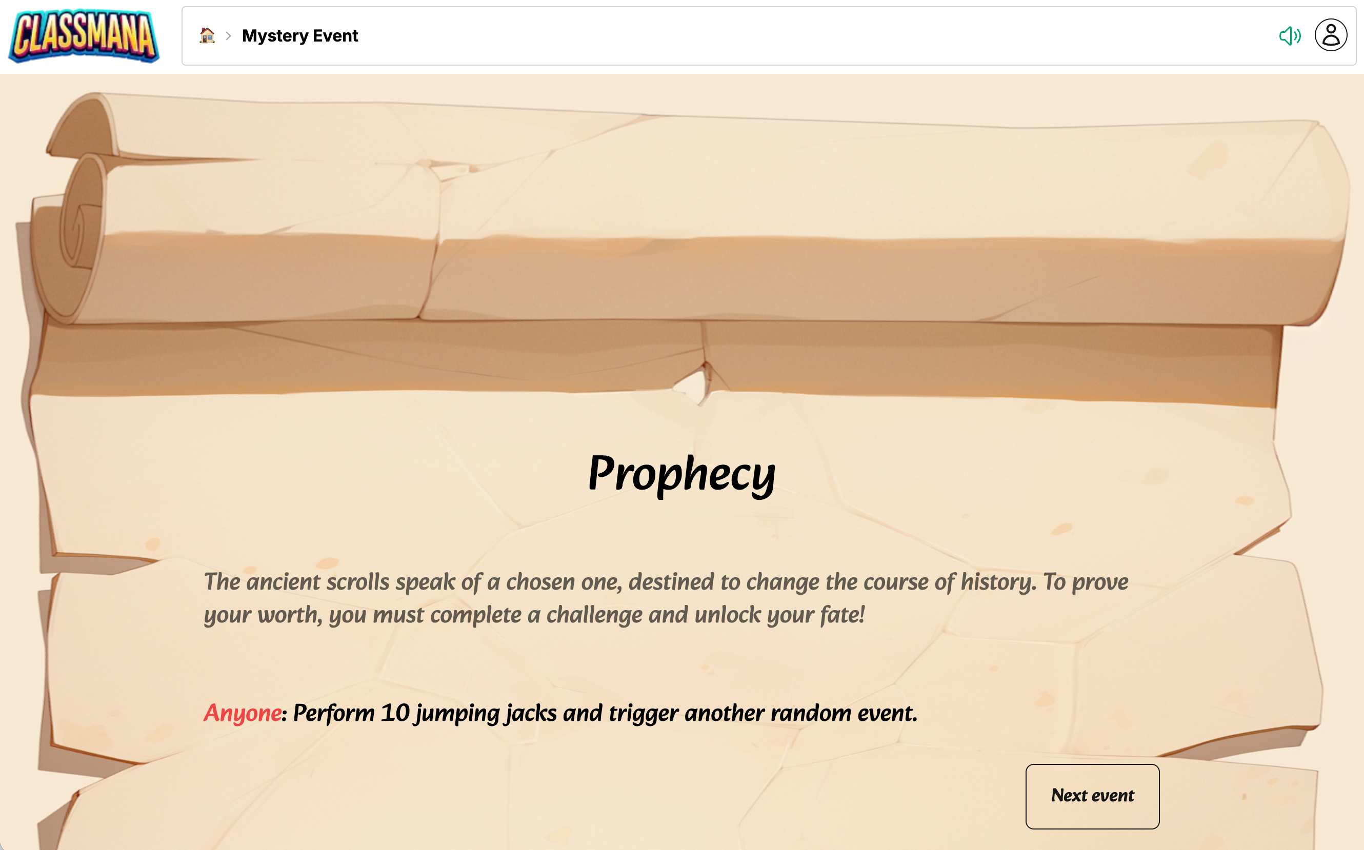 Мистериозните събития са забавни, бързи дейности, които поддържат класа ви ангажиран. Използвайте ги за да започнете часа си с вълнение, като награда или като почивка за мозъка. Всяко събитие отнема от 1 до 5 минути и добавя елемент на изненада към класната ви рутина.
